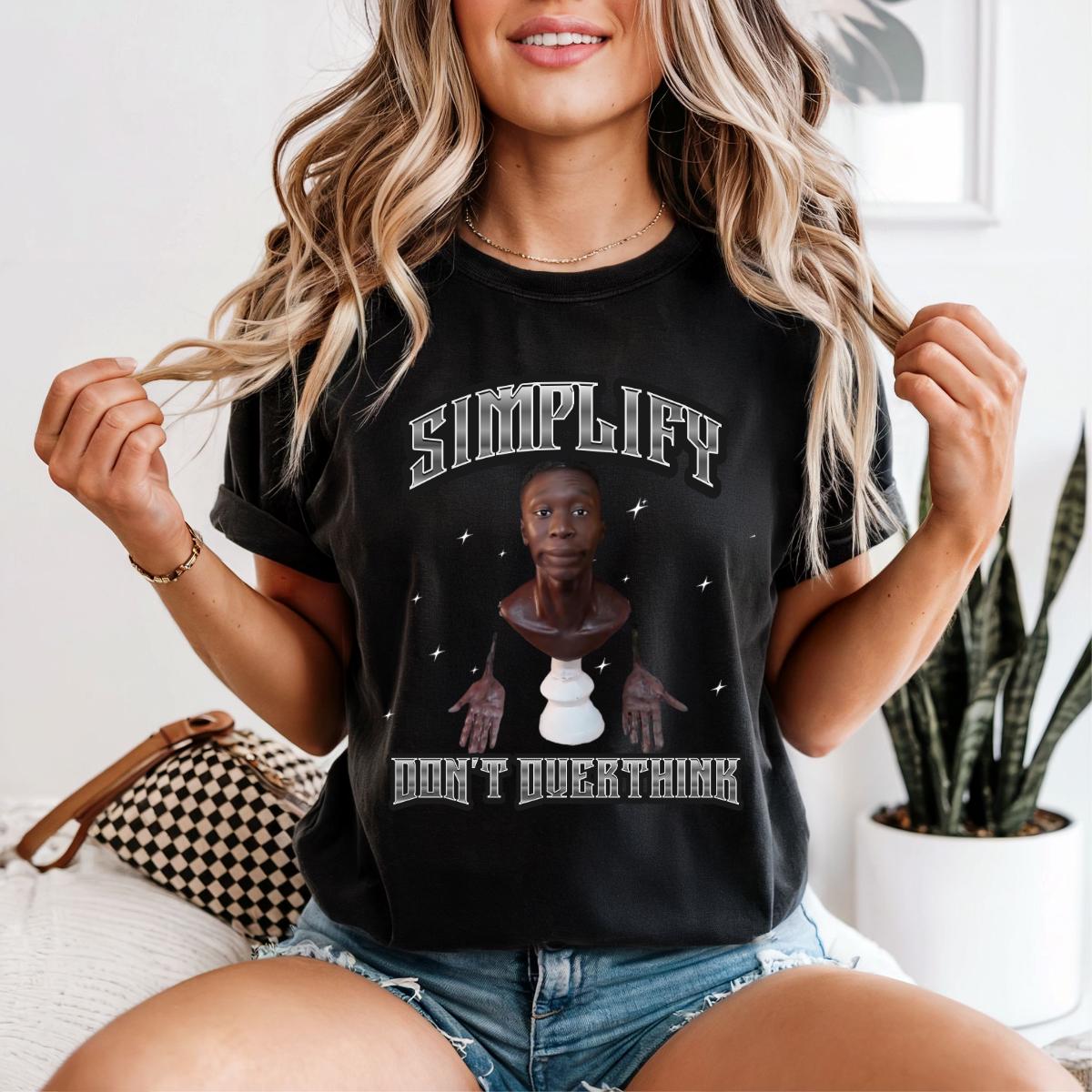 Bring the vibe of simplicity and humor with this Khaby Lame "Simplify, Don’t Overthink" meme shirt. A funny viral TikTok graphic tee inspired by the internet’s most relatable icon. Perfect for meme lovers, Gen Z, or anyone who appreciates retro 90s aesthetic streetwear.