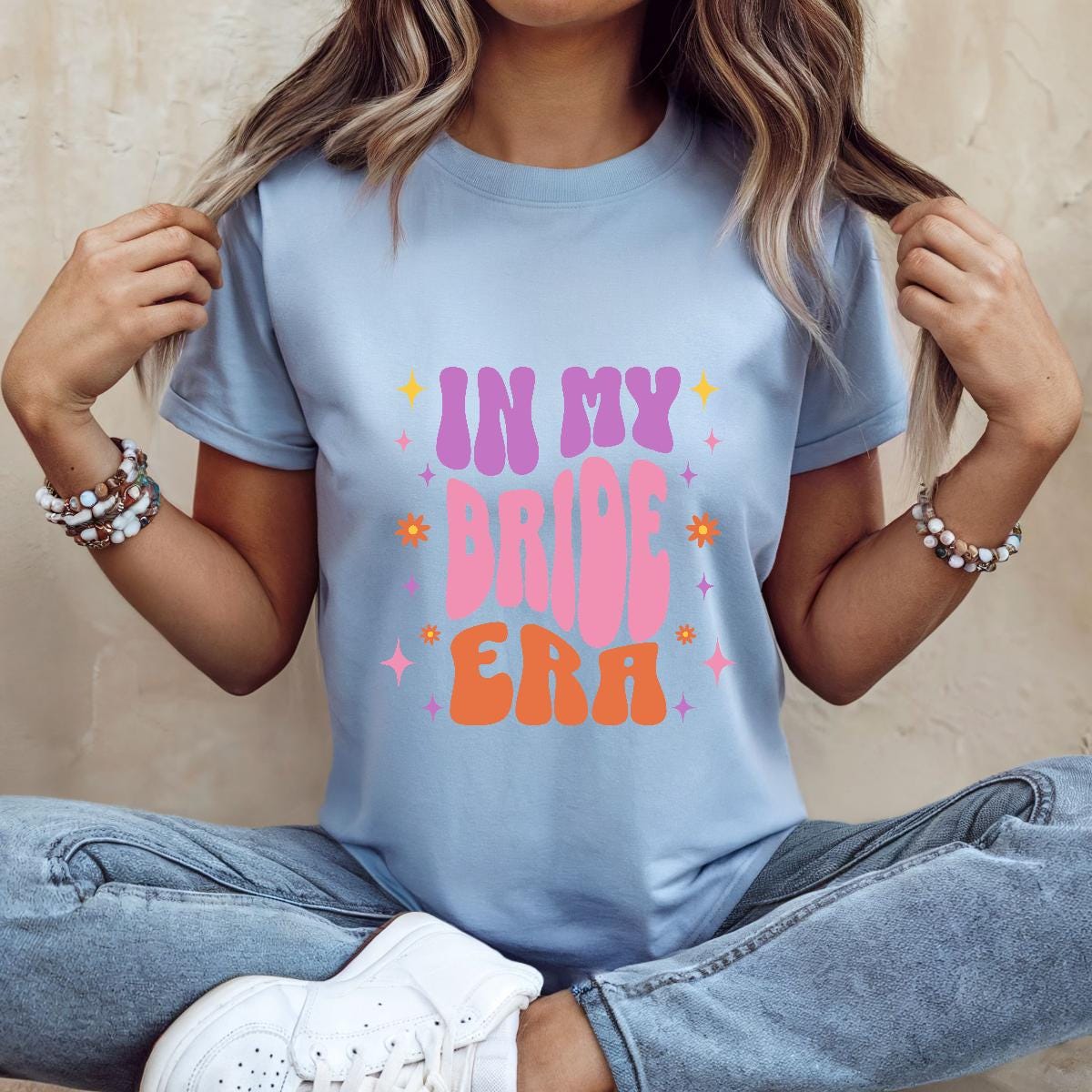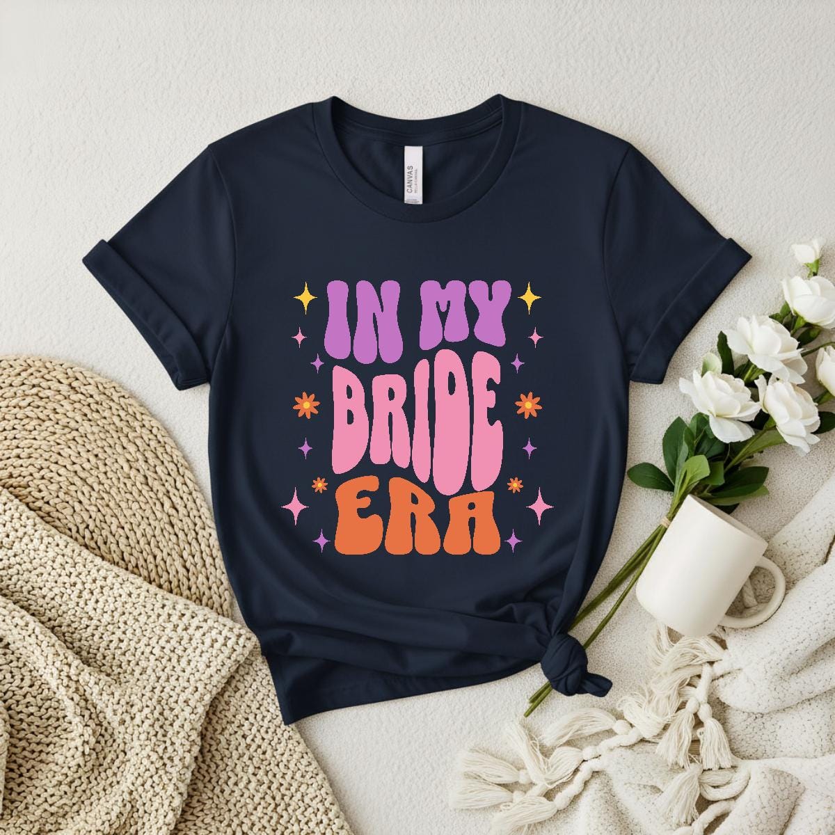 Celebrate your bridal season in style with this “In My Bride Era” retro tee. Designed with bold groovy lettering in bright bridal colors, it’s the perfect statement piece for bachelorette parties, wedding events, bridal showers, or everyday bride-to-be excitement. Fun, trendy, and full of personality, this shirt is made for brides who want to shine.