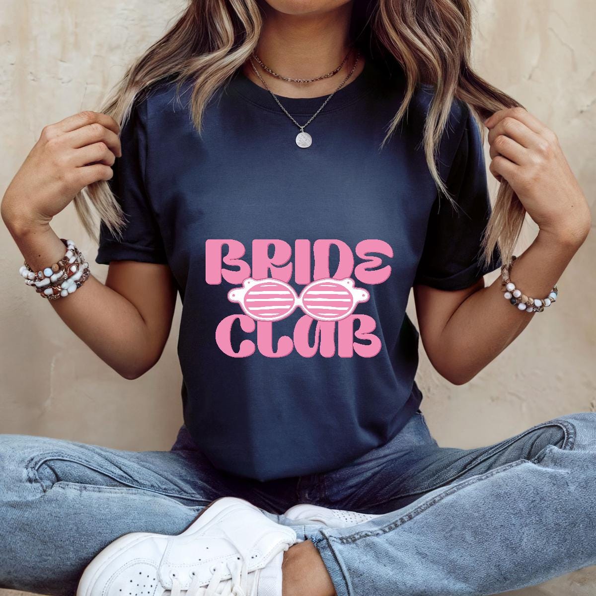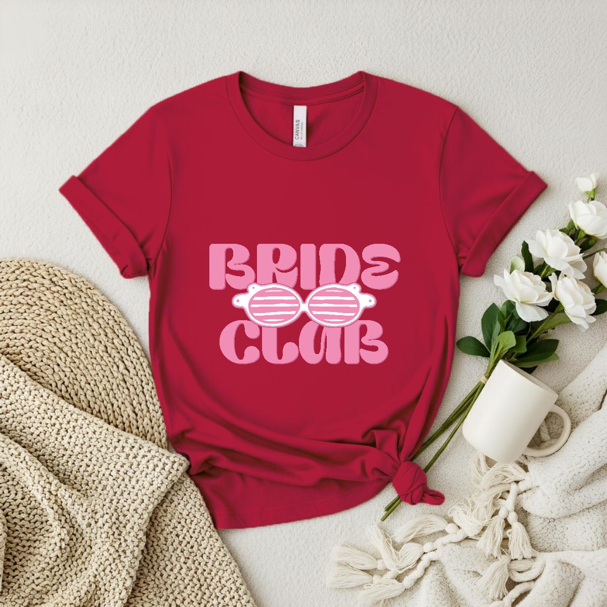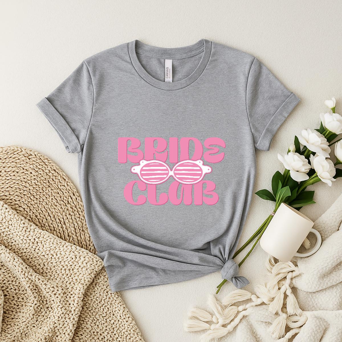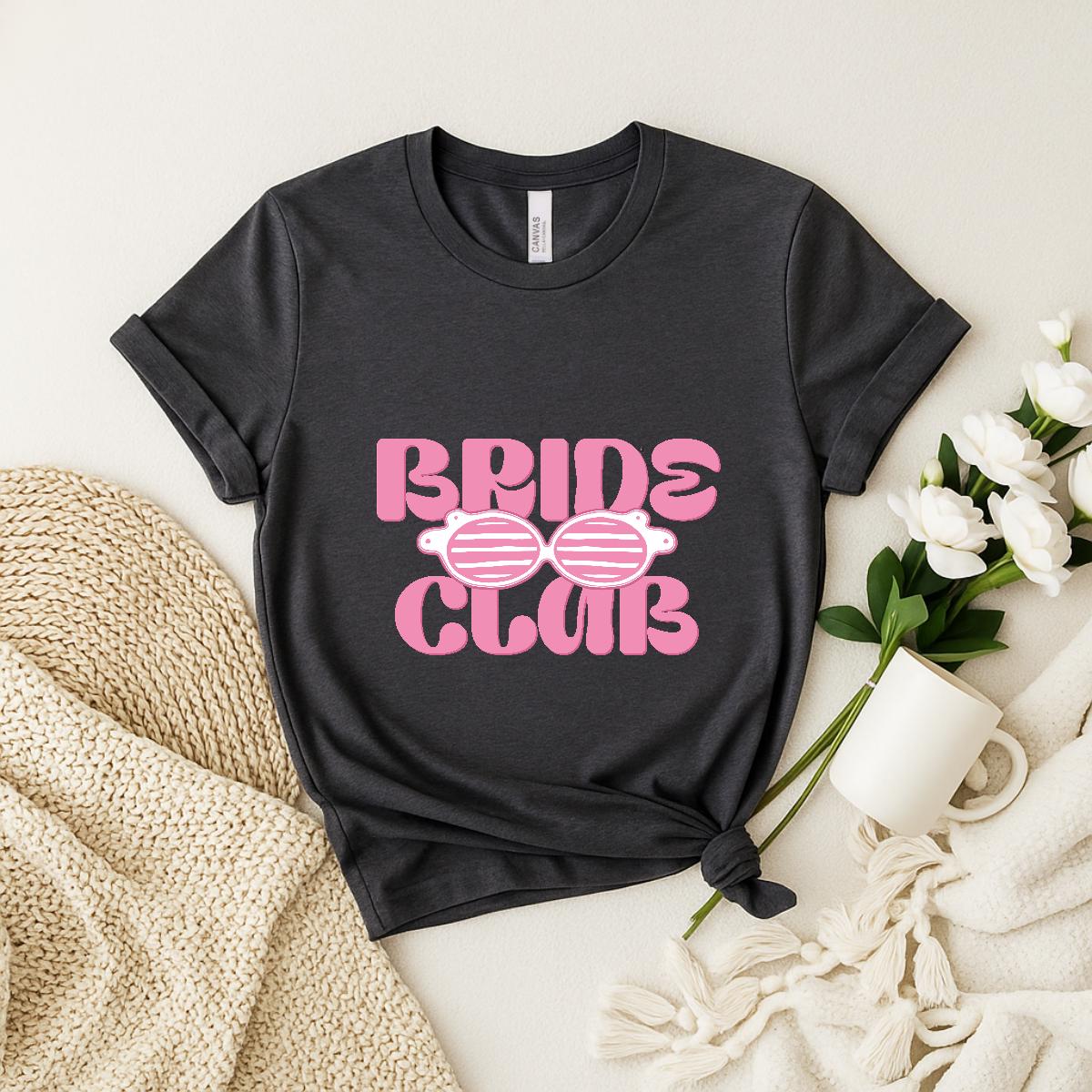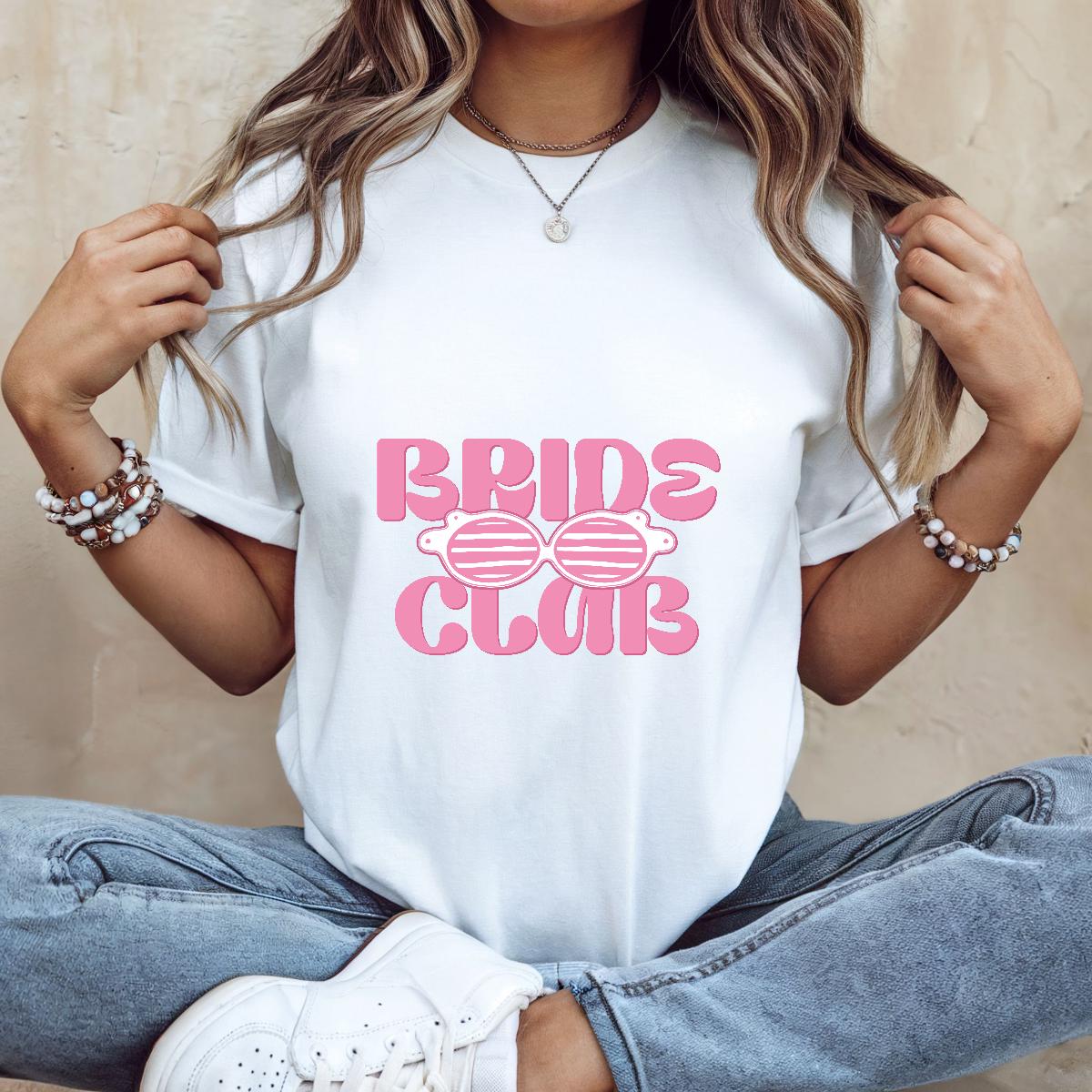 Join the fun and celebrate your bride era with this adorable “Bride Club” t-shirt. Designed with bold retro lettering and cute sunglasses graphics, it’s the perfect aesthetic tee for bachelorette parties, bridal trips, getting-ready outfits, or engagement celebrations. Fun, stylish, and Insta-ready, it’s made for brides who love playful, trendy wedding apparel.