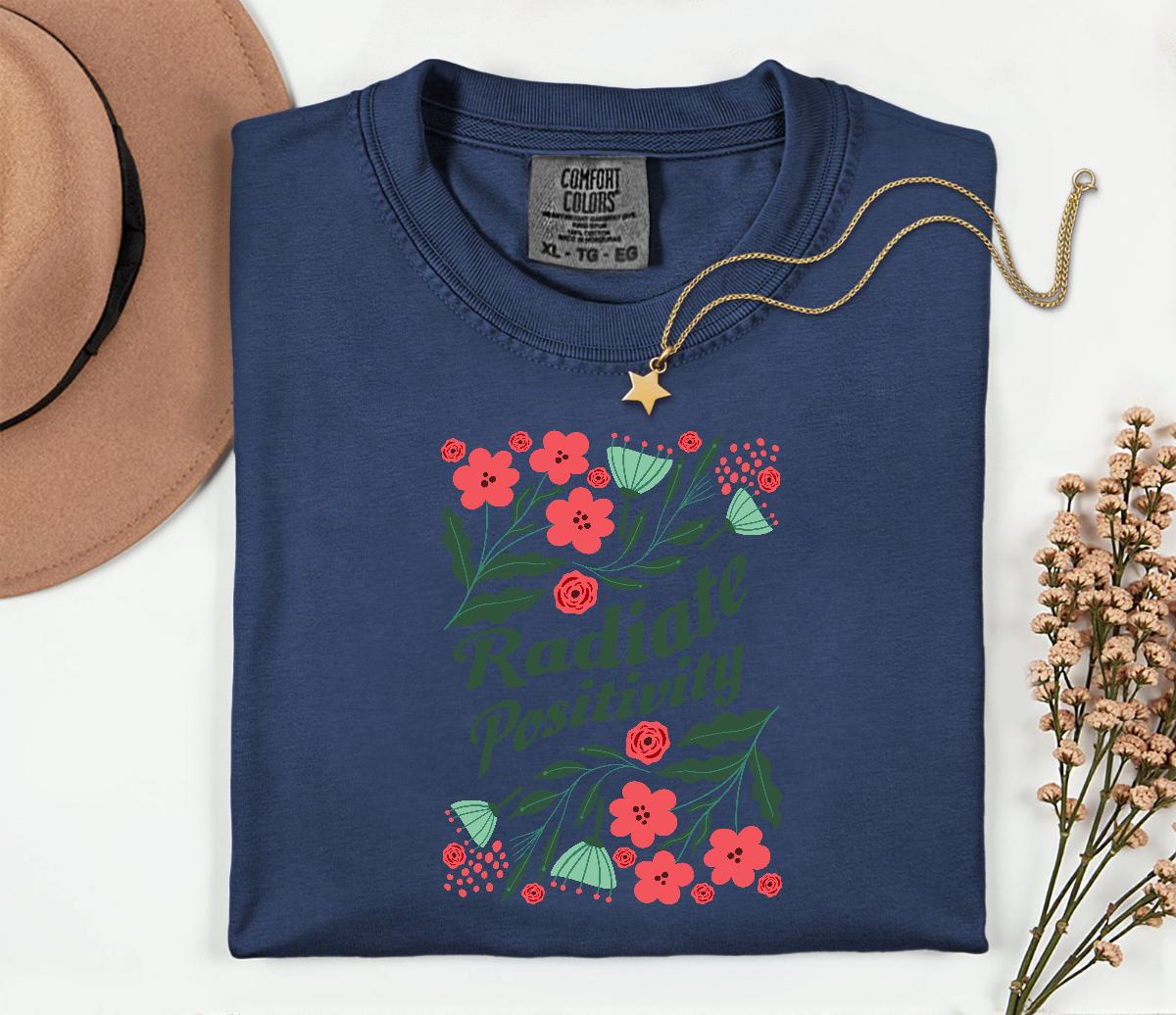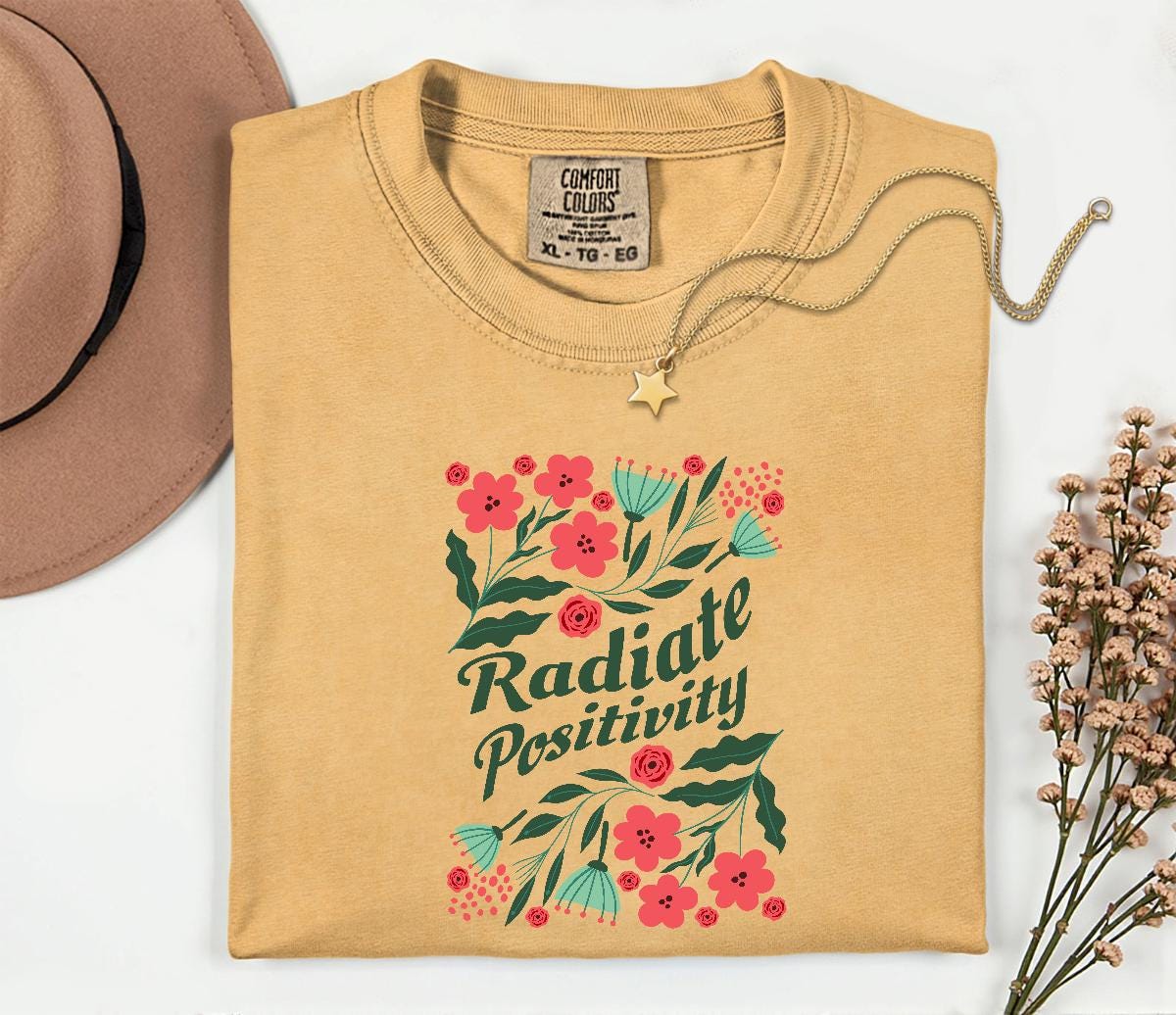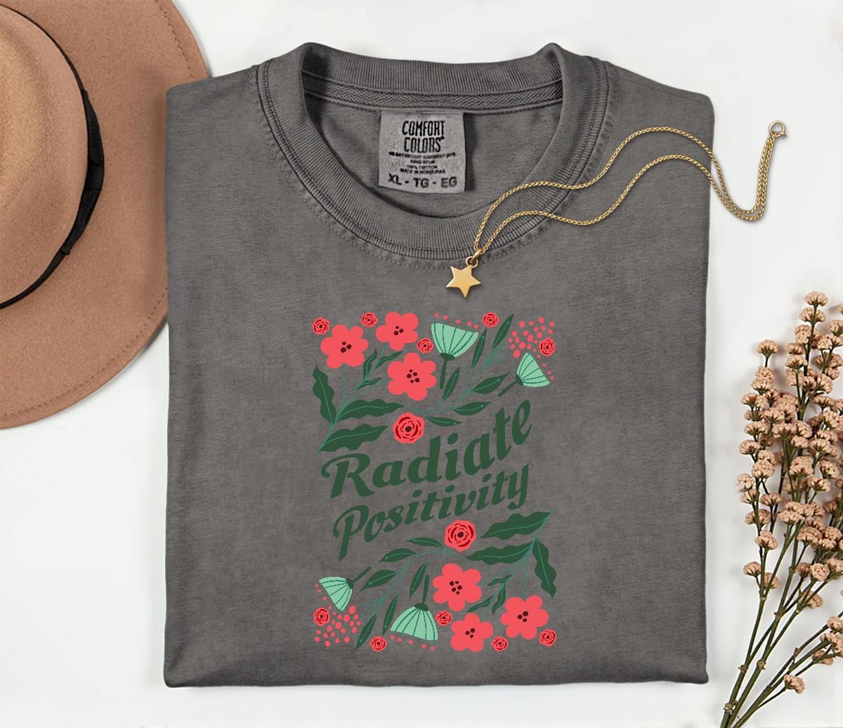 Brighten every room you walk into with this uplifting “Radiate Positivity” floral t-shirt. Featuring vibrant vintage-inspired flowers and elegant typography, this tee brings warmth, kindness, and confidence to your everyday look. Perfect for wellness lovers, floral fans, and anyone who believes in spreading good energy.