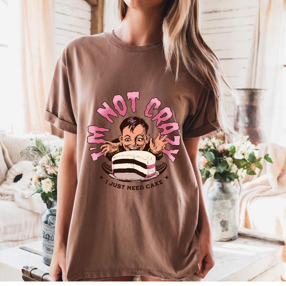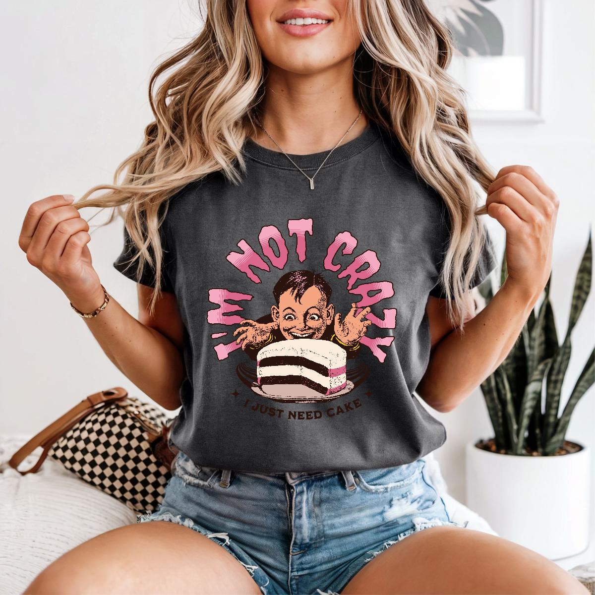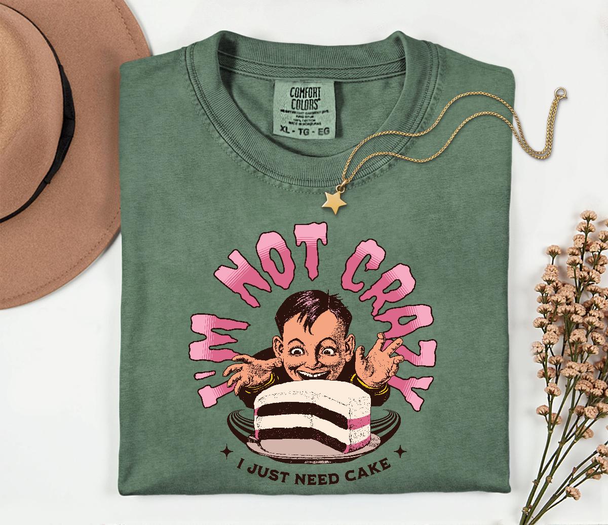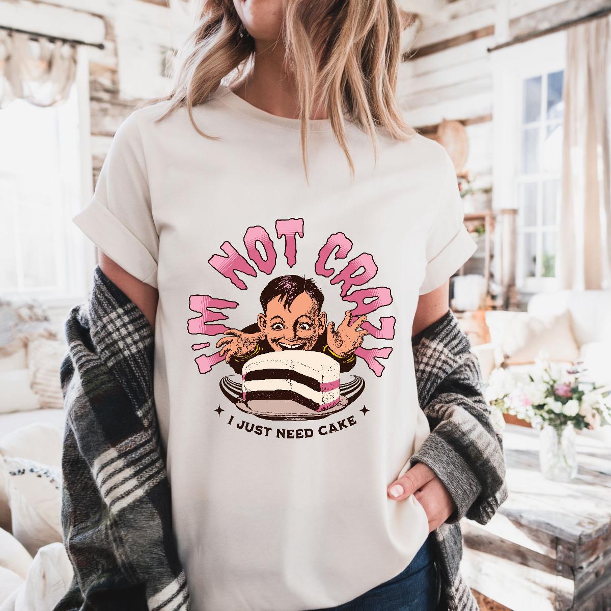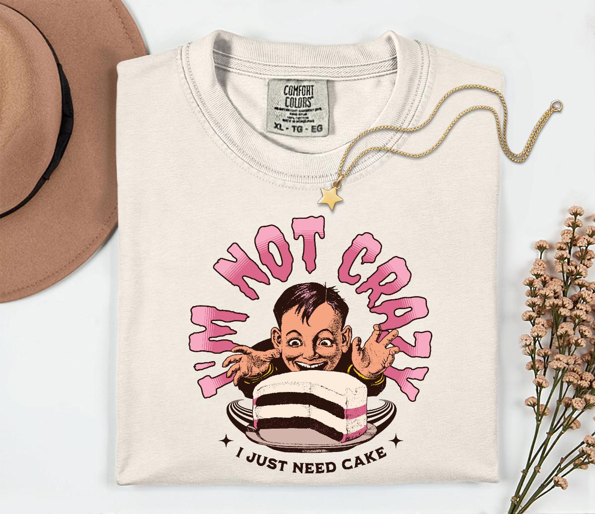 For cake lovers with a sense of humor, this “I’m Not Crazy, I Just Need Cake” tee is the perfect retro treat. Featuring a nostalgic vintage-style illustration and bold distressed typography, this shirt is made for anyone who believes dessert is a personality trait.