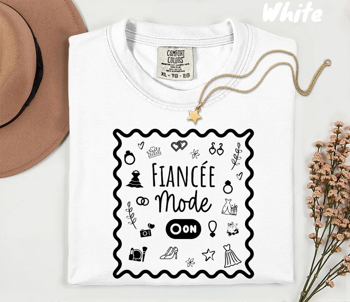 Celebrate your engagement in the cutest way with this Fiancée Mode On Comfort Colors® tee! Featuring hand-drawn bridal doodles inside a wavy frame, this soft vintage-style shirt is perfect for future brides who want to enjoy every moment of their bride-to-be era in total comfort and style.
