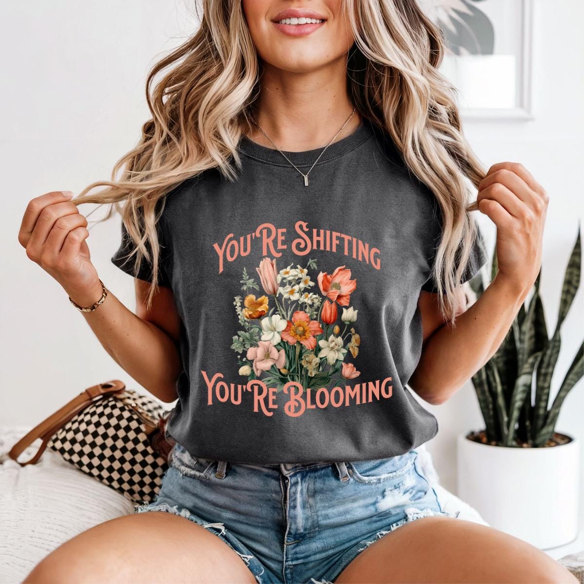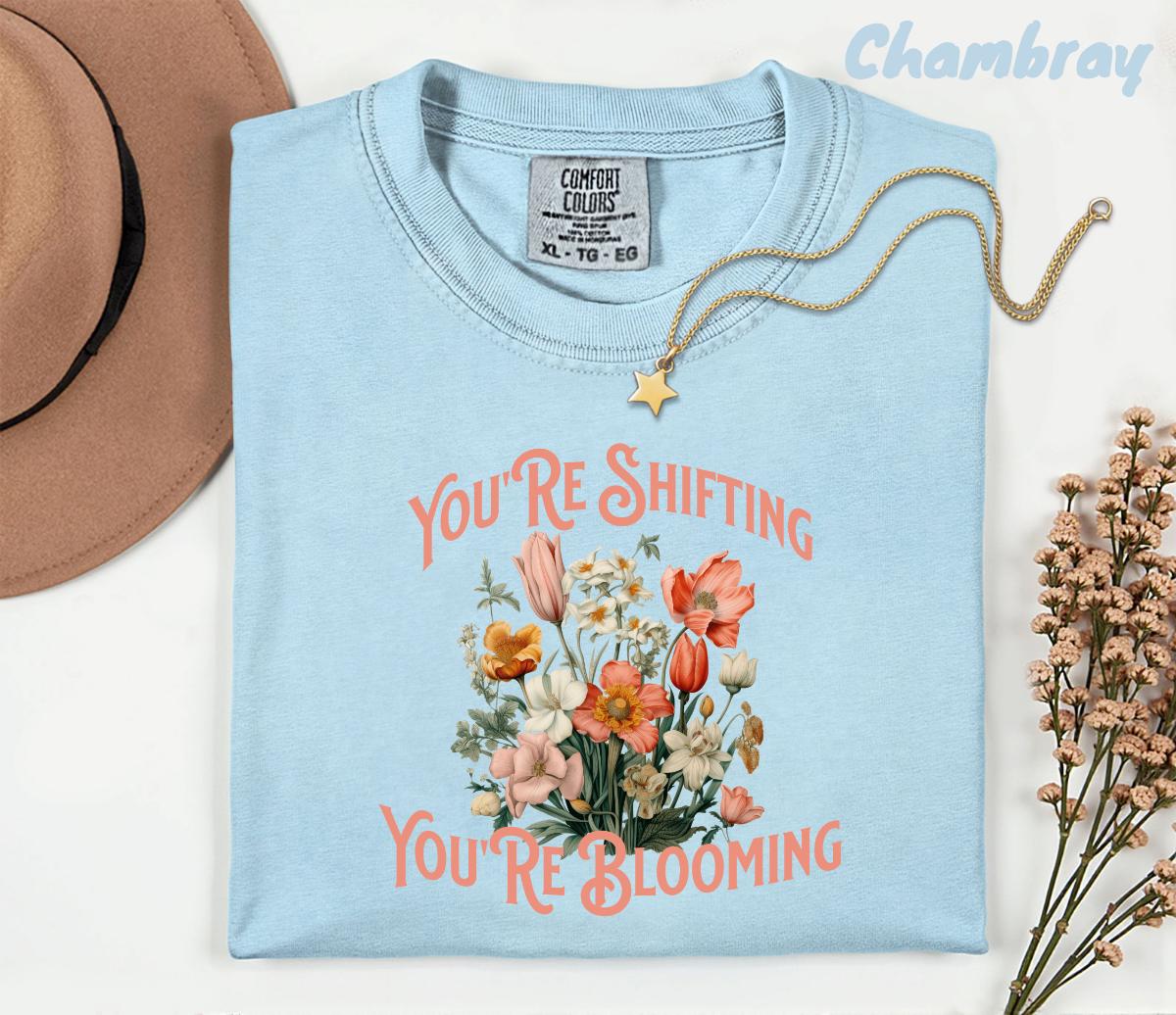 Step into your transformation with this uplifting Comfort Colors® tee featuring a stunning bouquet of vintage florals and the empowering quote “You’re Shifting, You’re Blooming.” Soft, garment-dyed fabric gives this shirt a relaxed, lived-in feel while the bold boho artwork adds the perfect aesthetic touch.