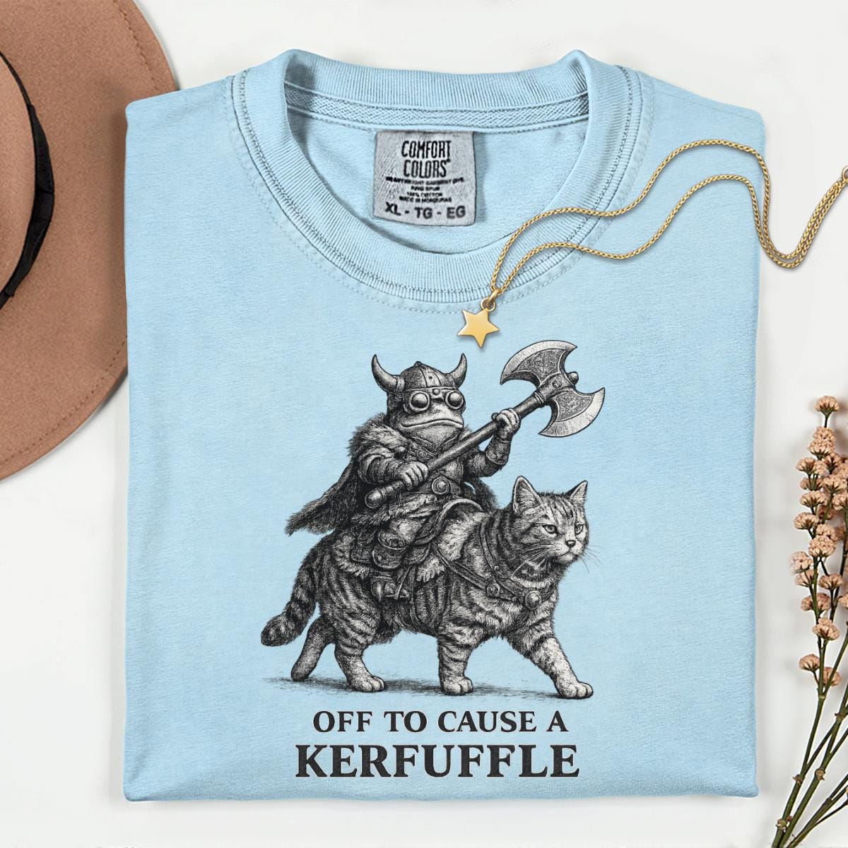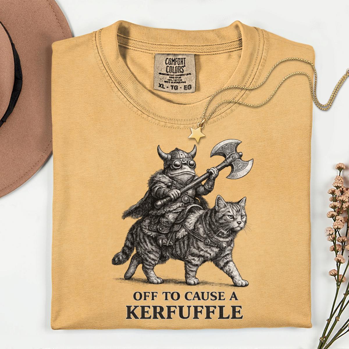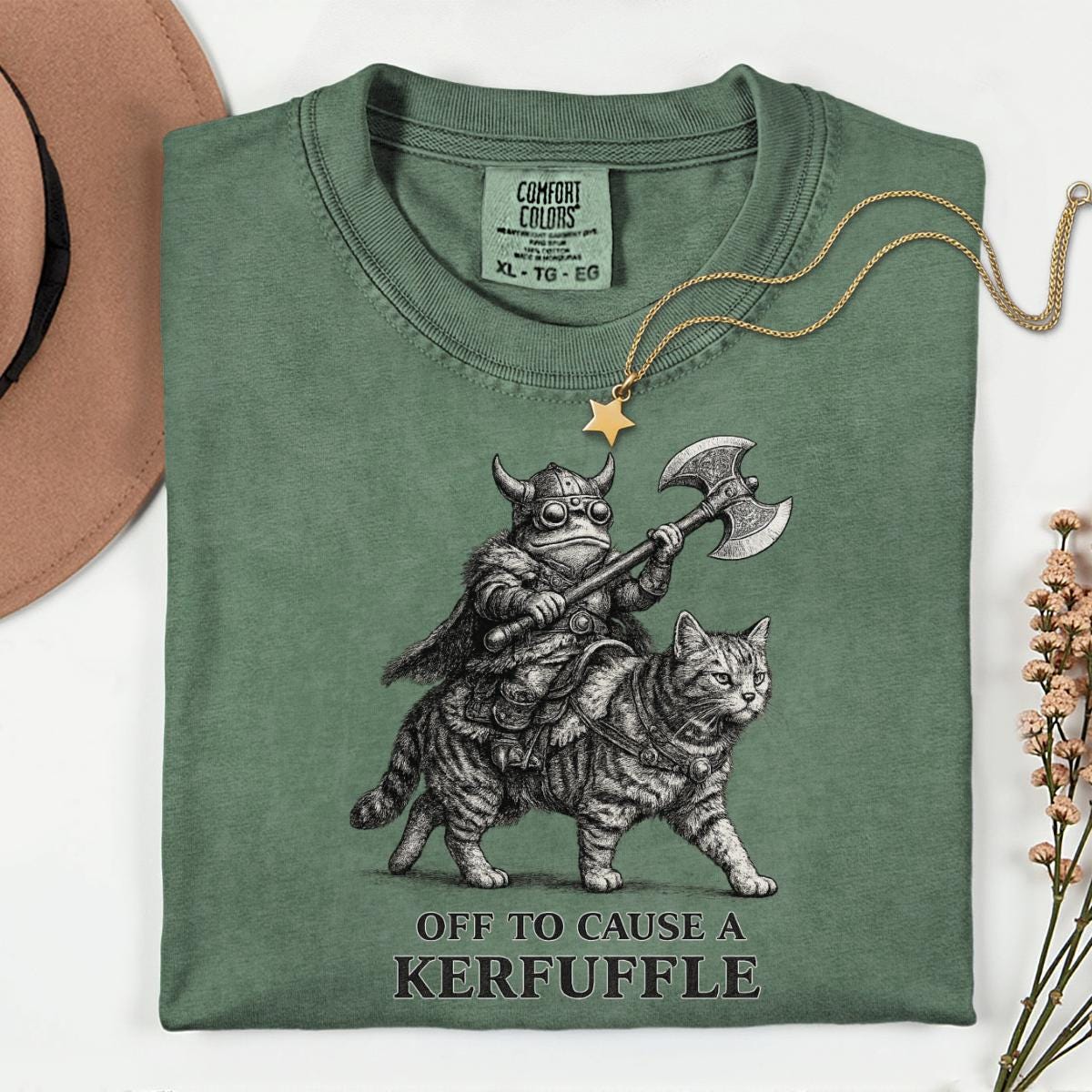 Off to Cause a Kerfuffle T-Shirt, Sarcastic Frog Meme Gift, Vintage 90s Adult Humor Graphic Tee