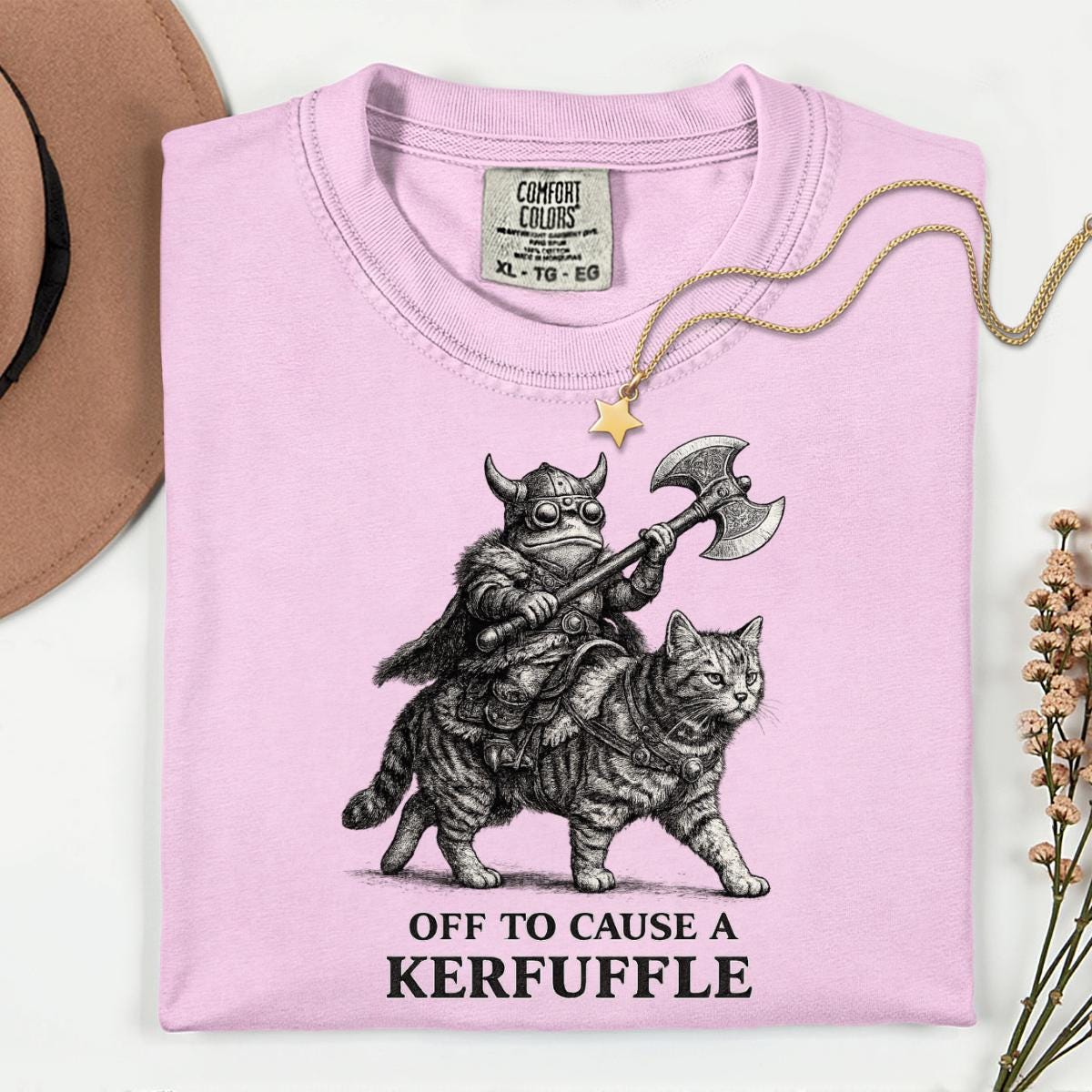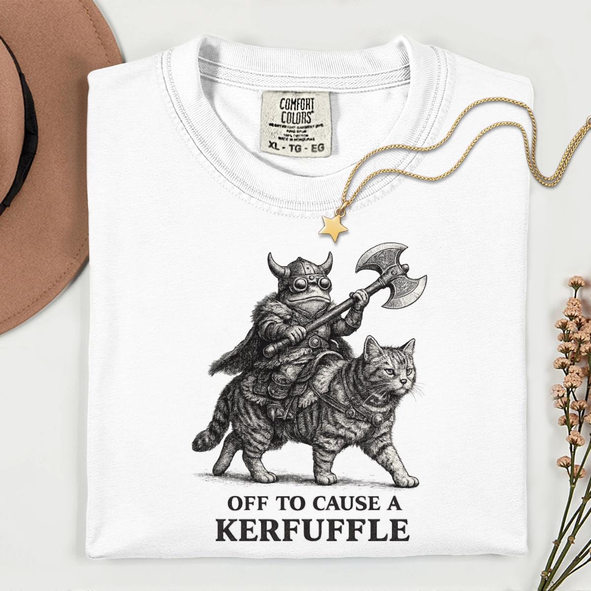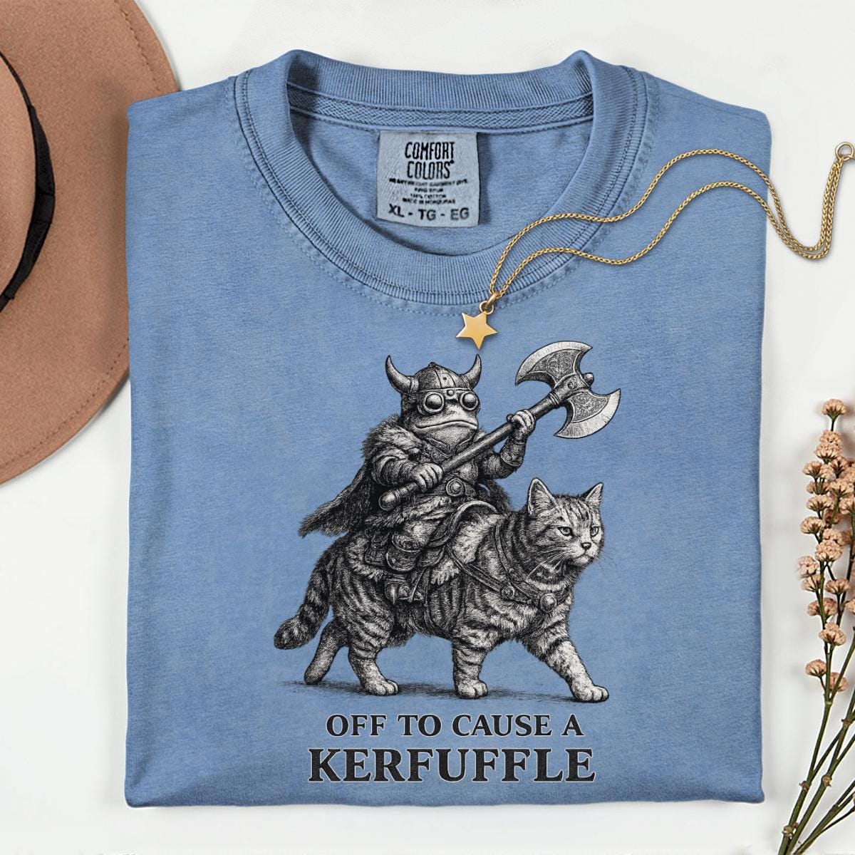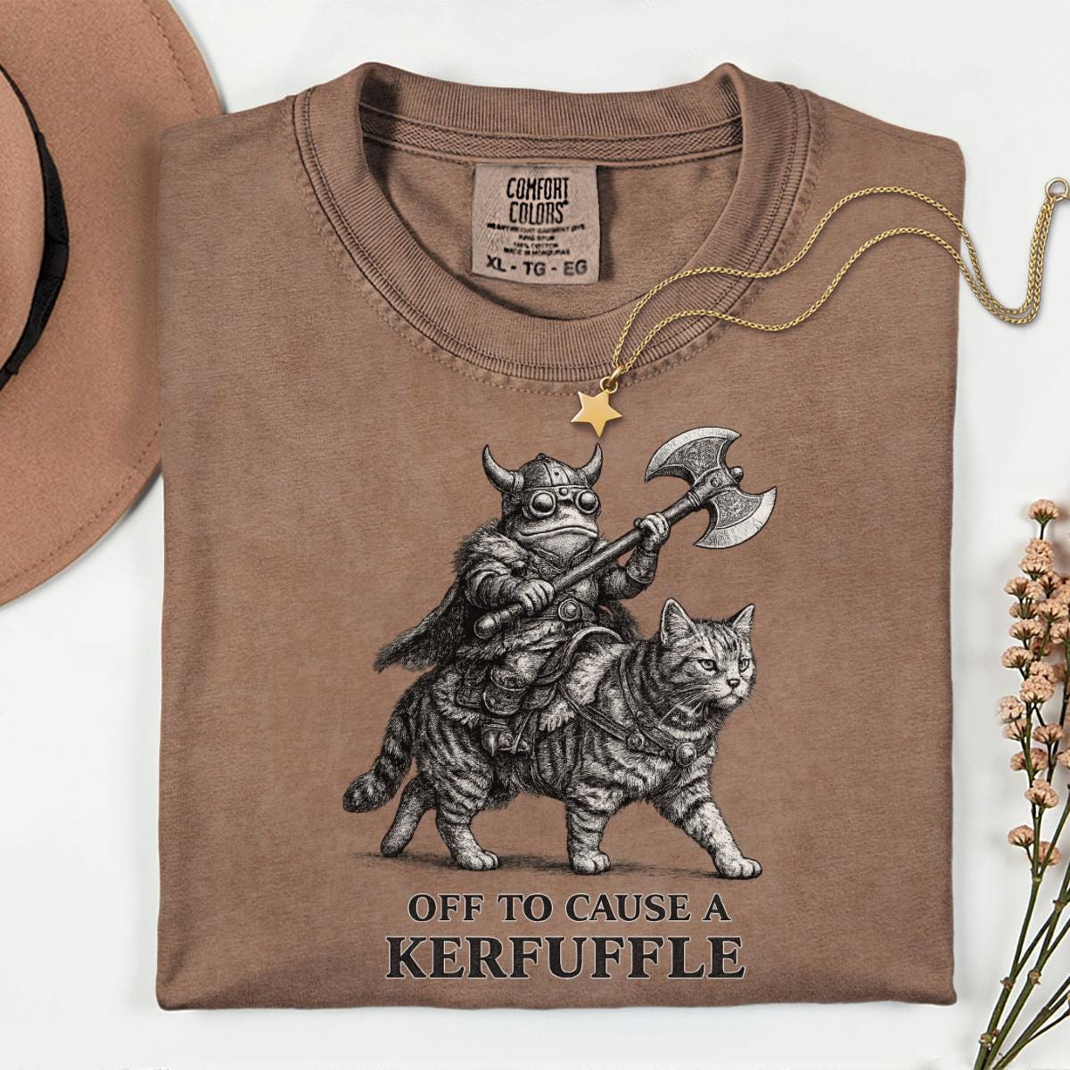 Off to Cause a Kerfuffle T-Shirt, Sarcastic Frog Meme Gift, Vintage 90s Adult Humor Graphic Tee