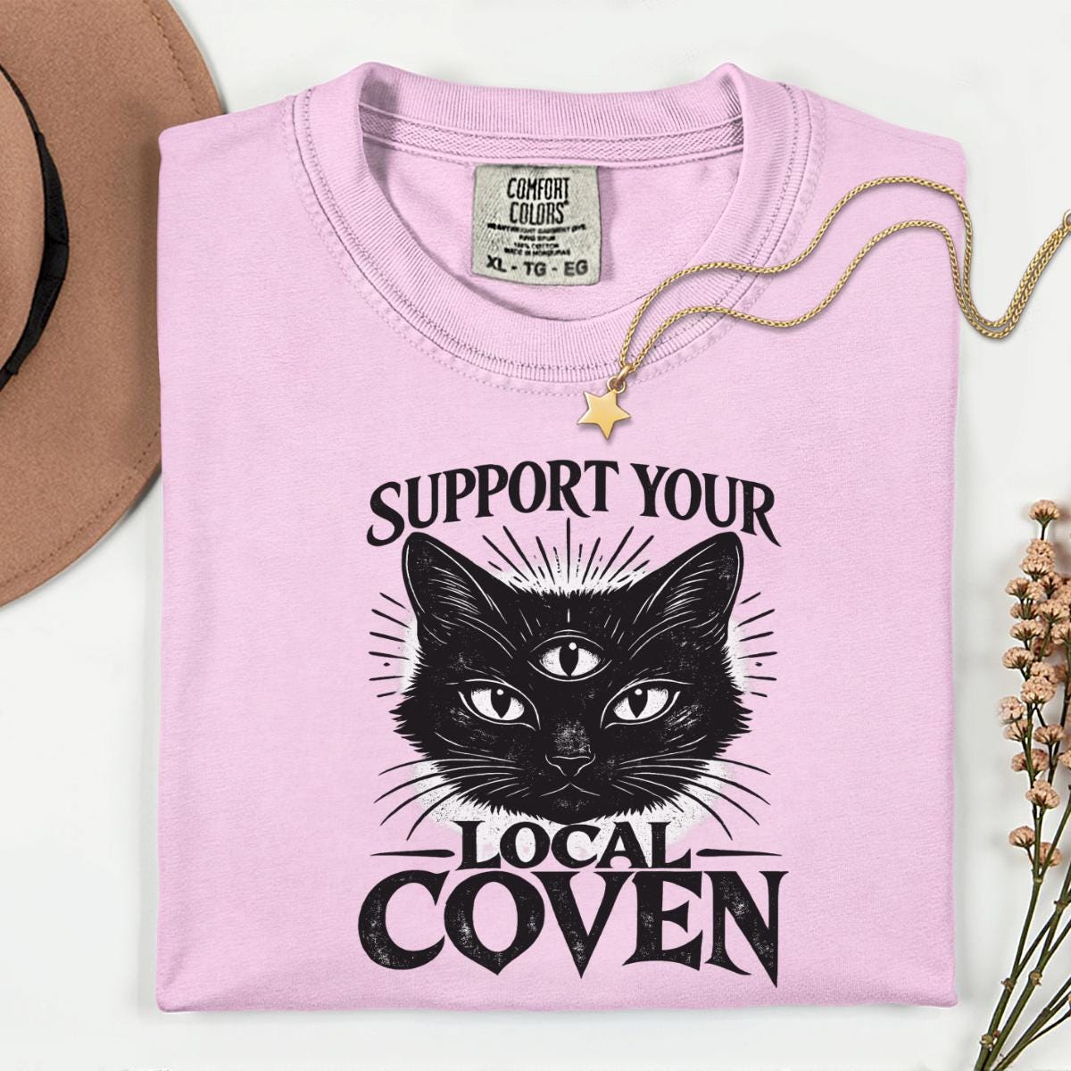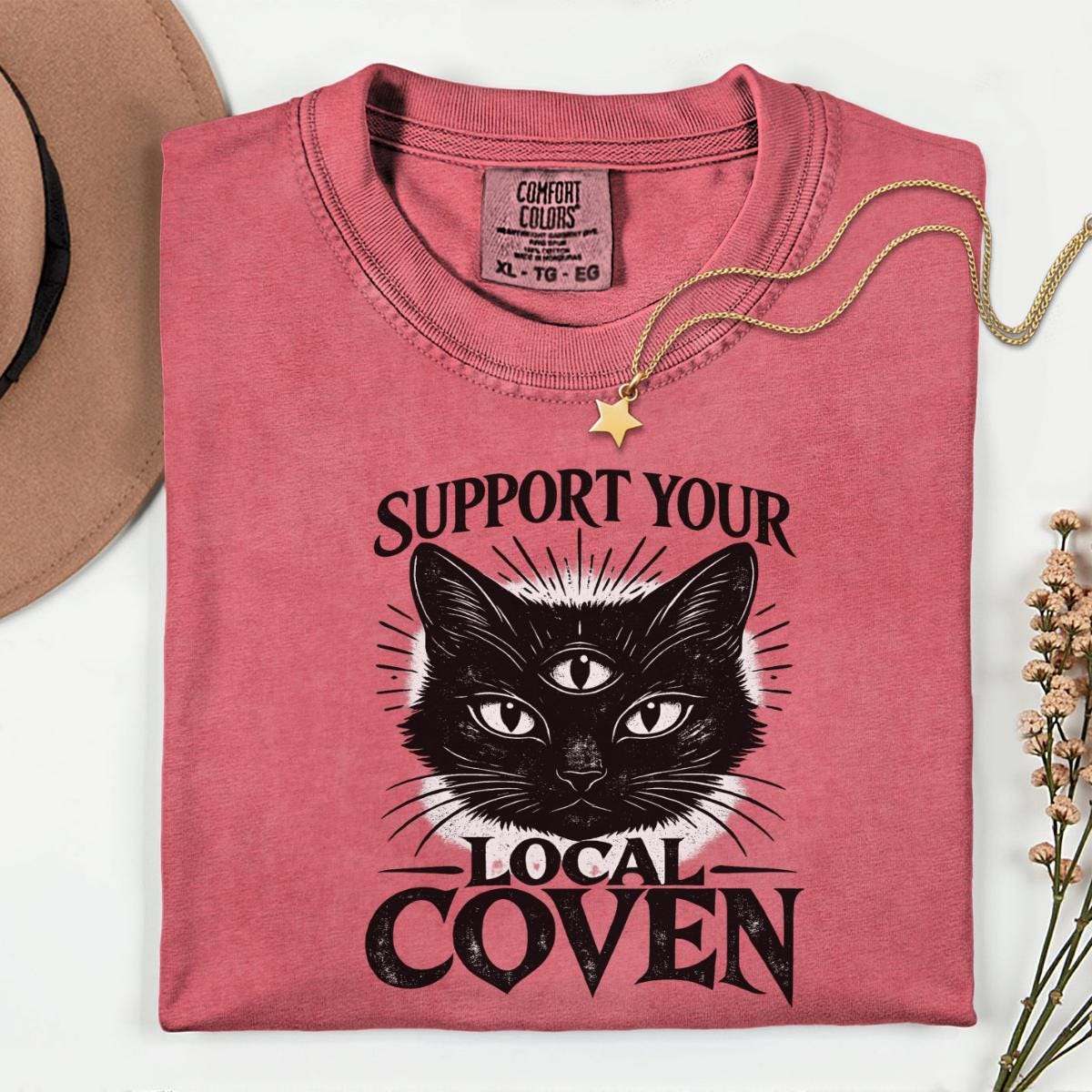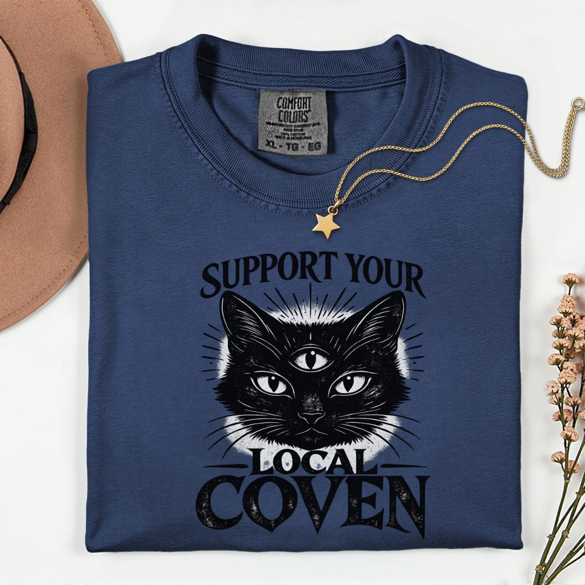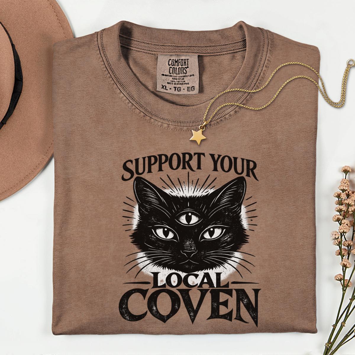 Support Your Local Coven T-Shirt, Witchy Black Cat Goth Gift, Vintage 80s 90s Grunge Punk Graphic Tee