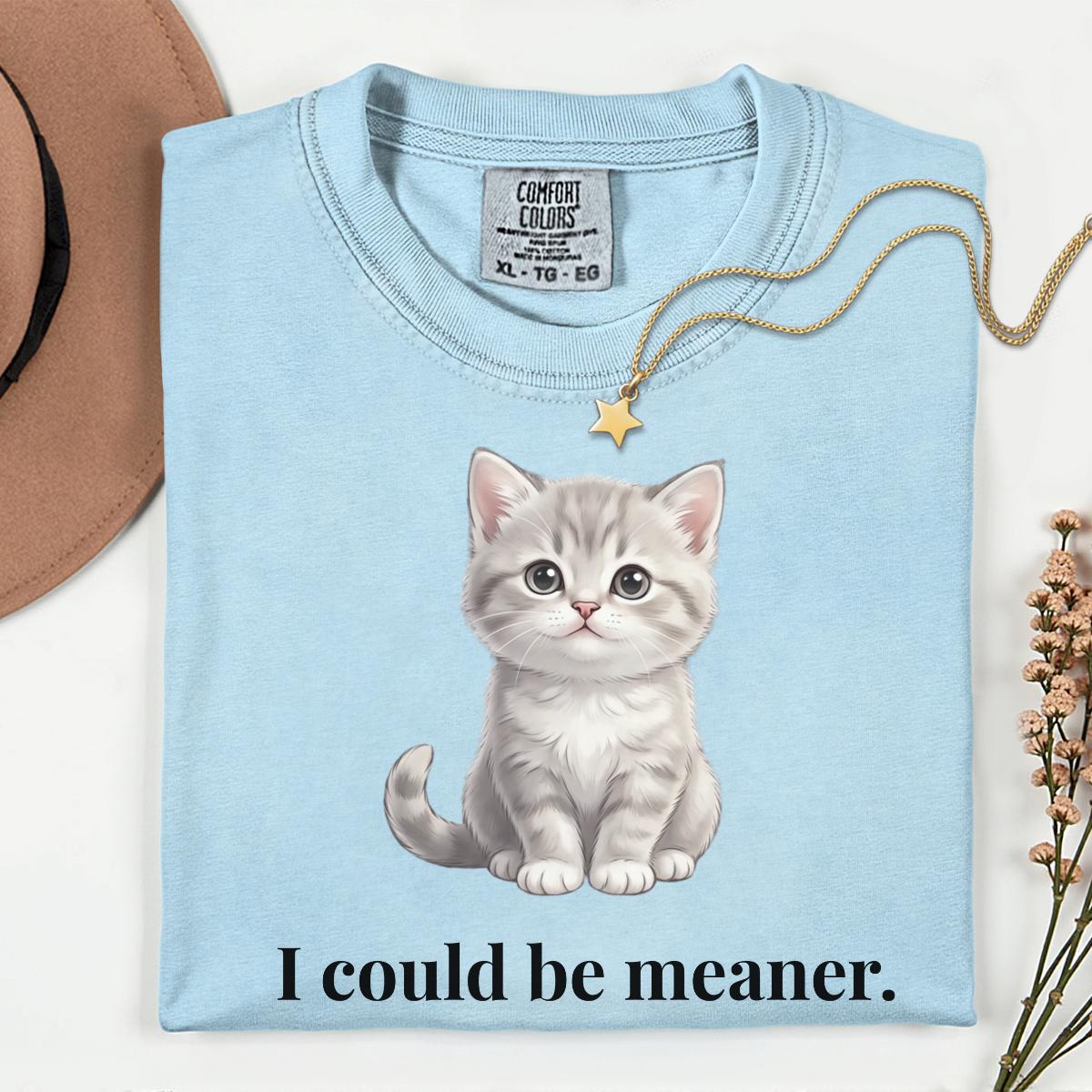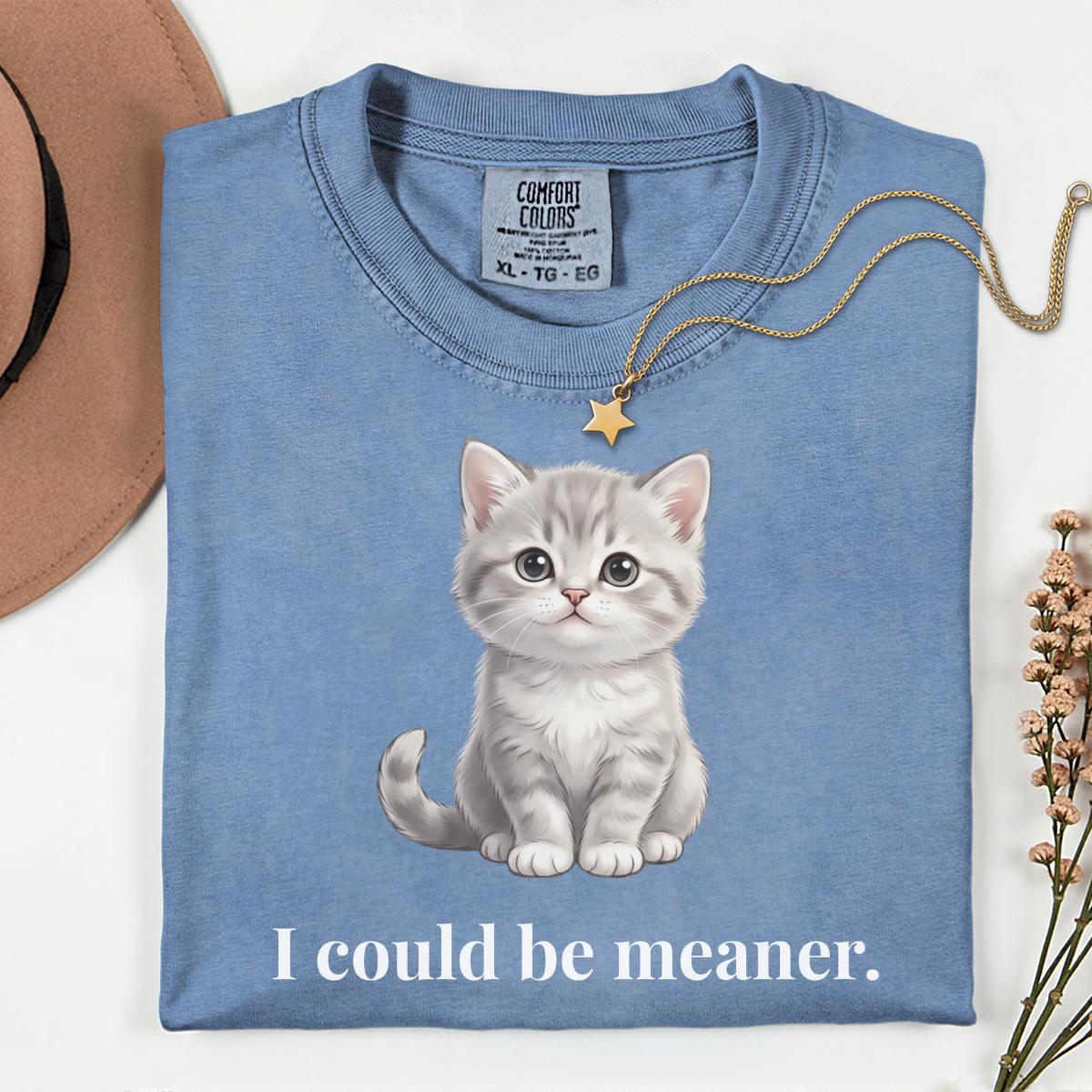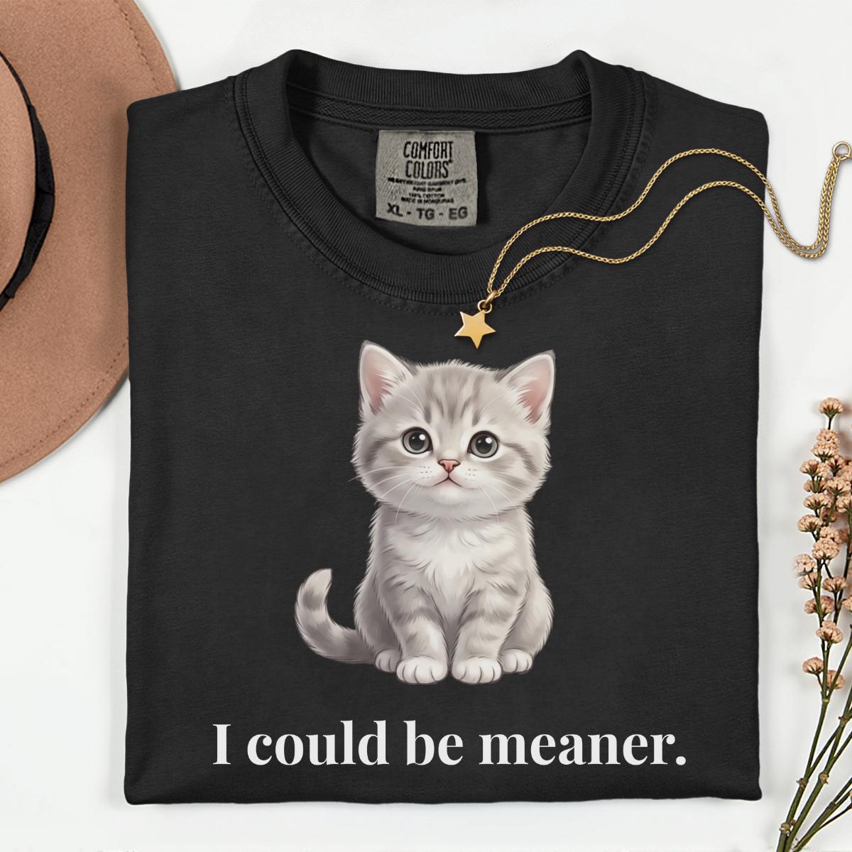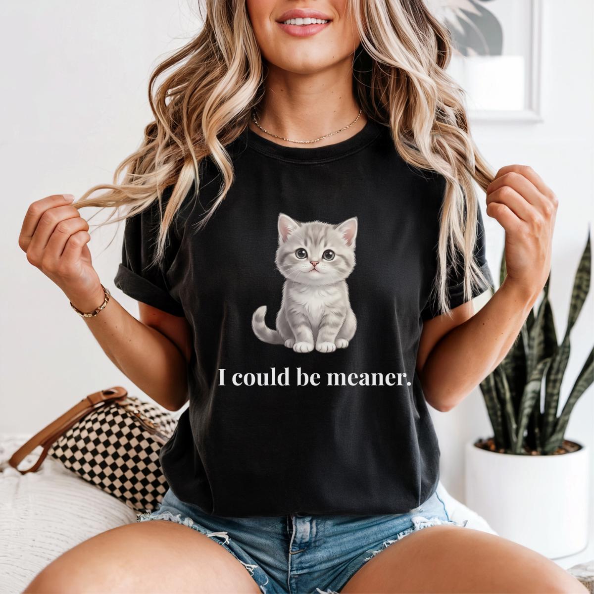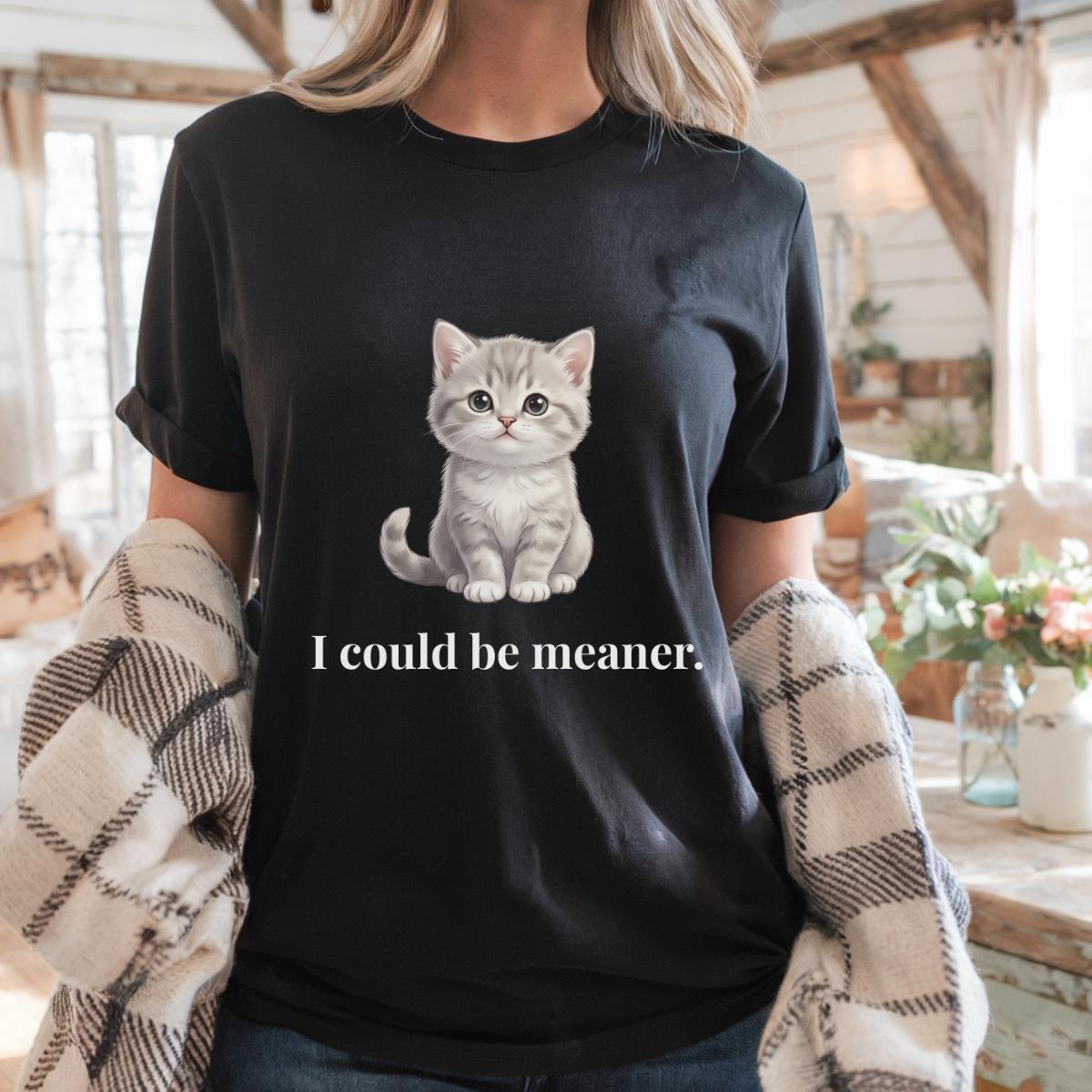 I Could Be Meaner T-Shirt, Funny Cute Kitty Cat Gift, Cat Lover Humor Graphic Tee