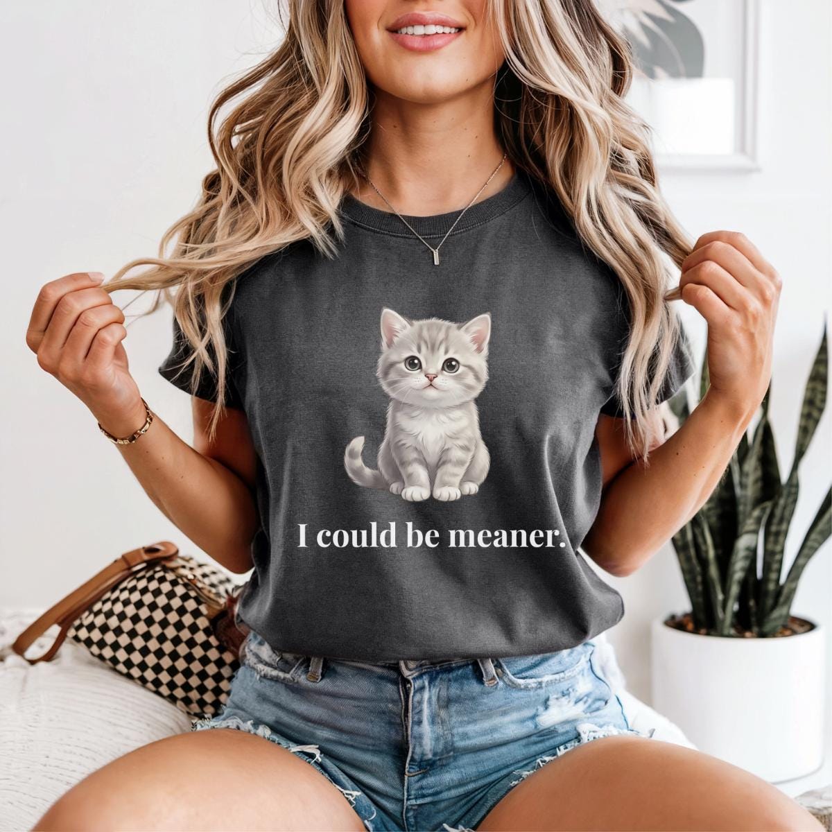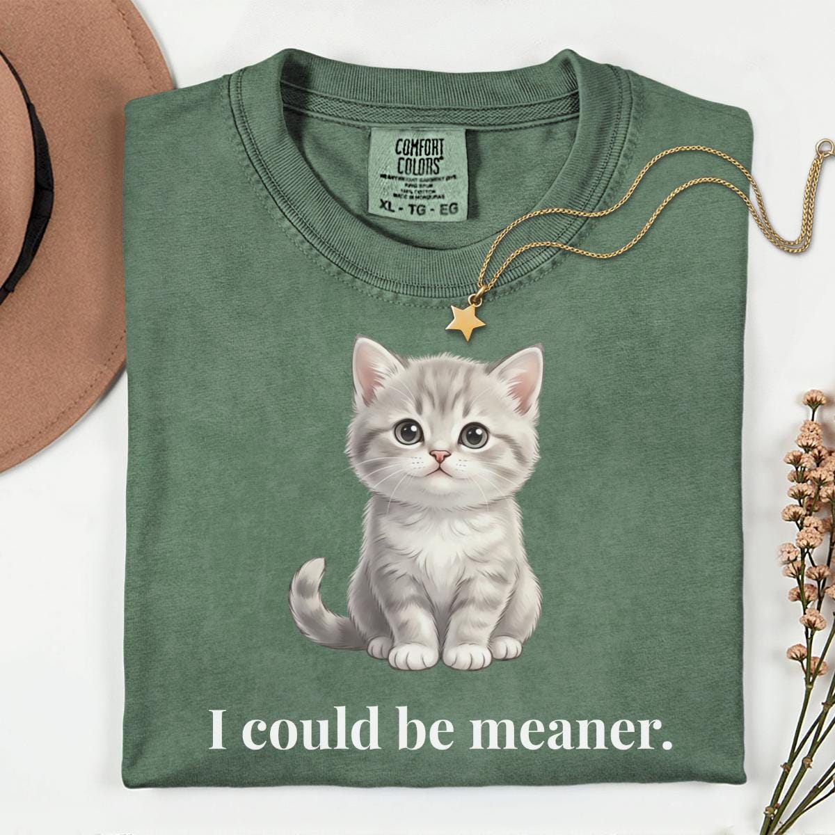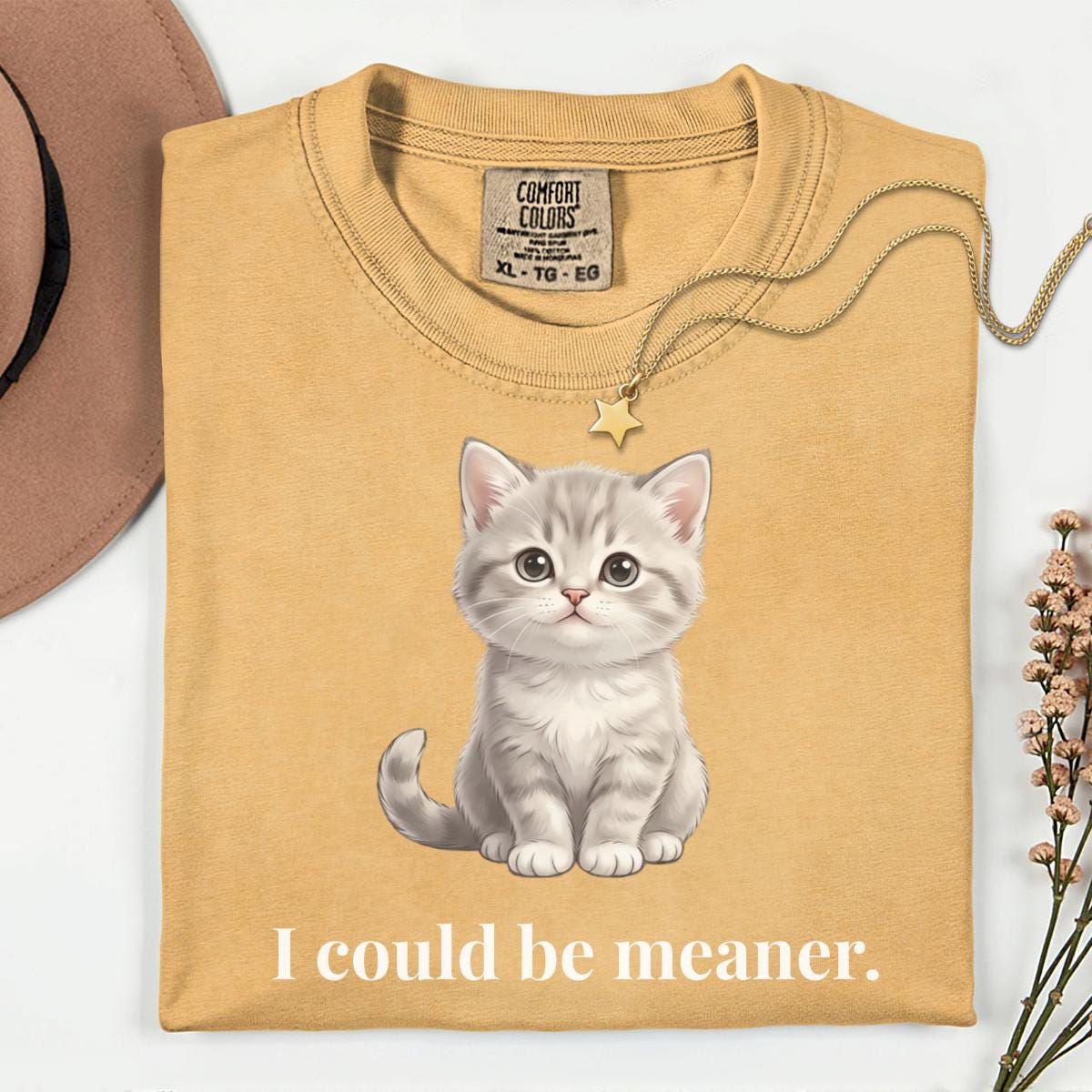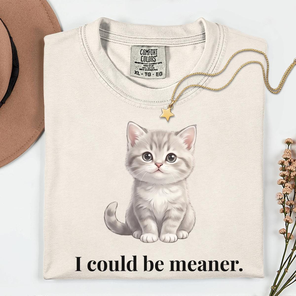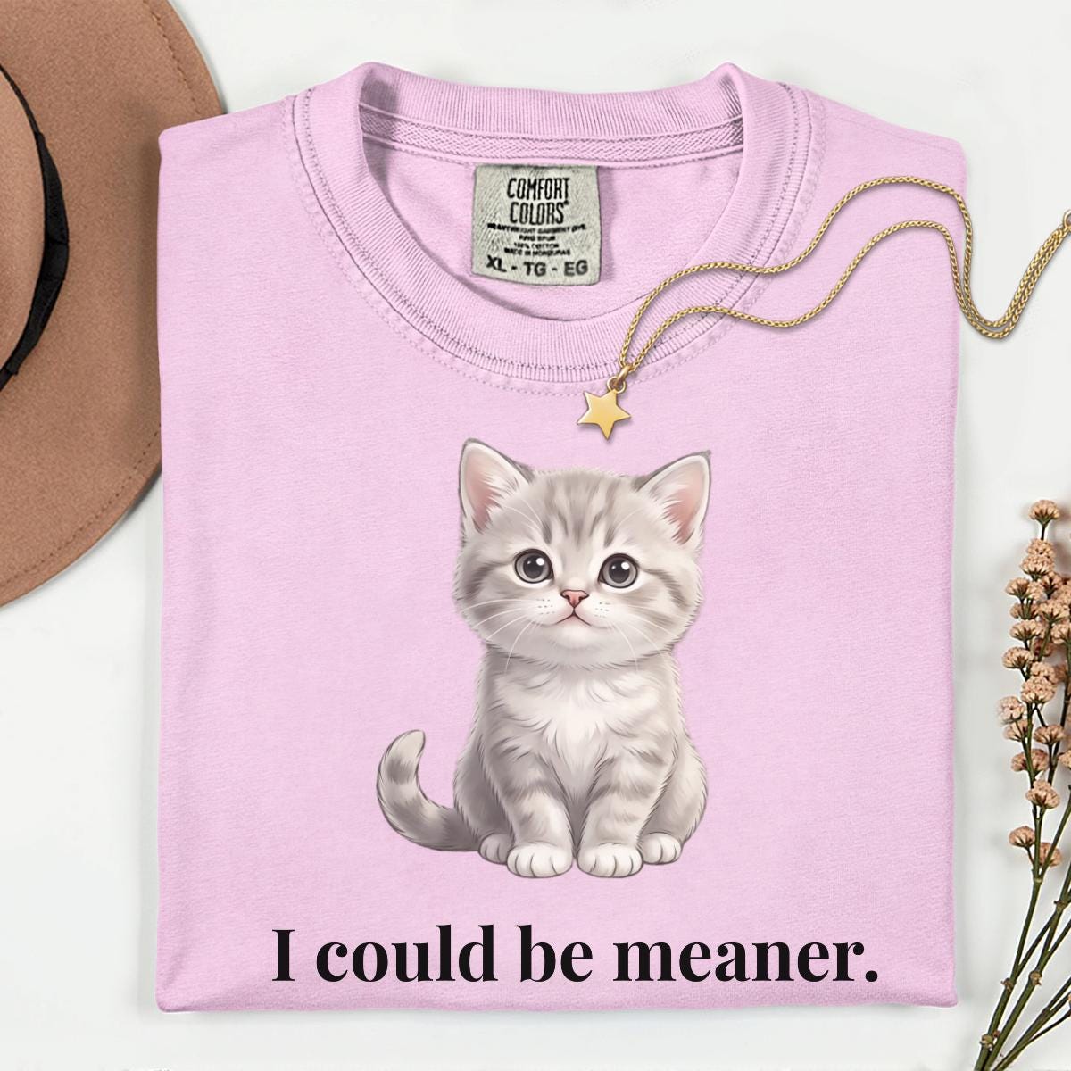 I Could Be Meaner T-Shirt, Funny Cute Kitty Cat Gift, Cat Lover Humor Graphic Tee
