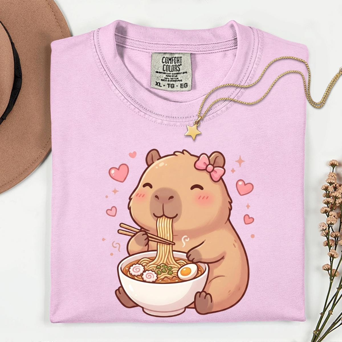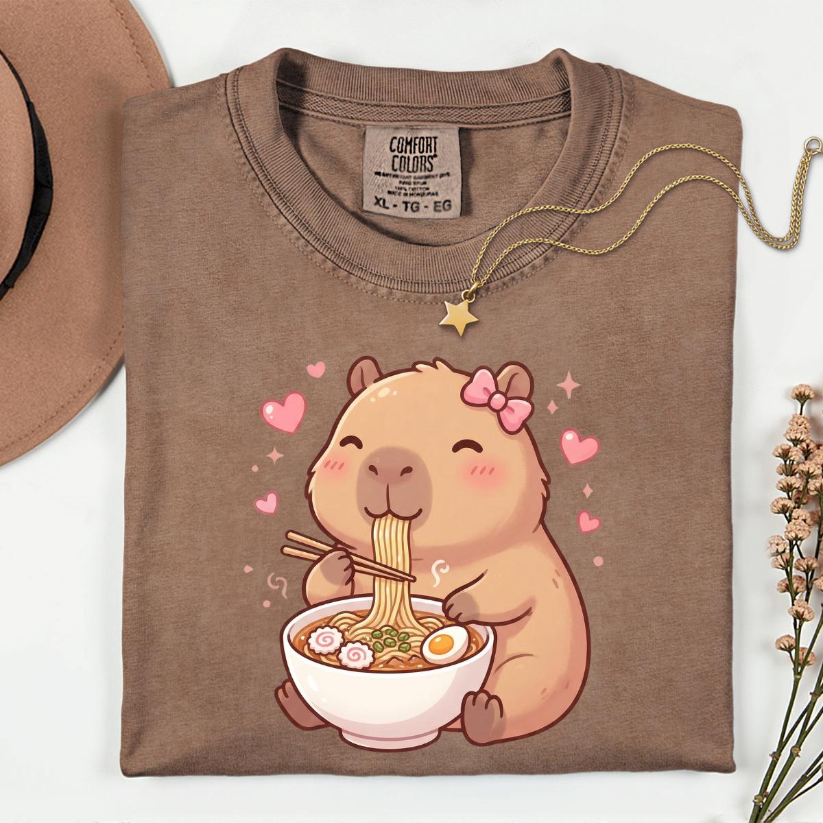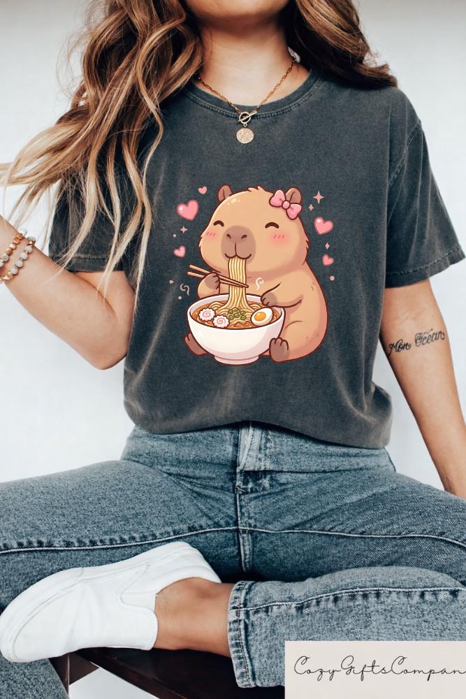 Cute Capybara Ramen Kawaii Tea T-Shirt, Kawaii Capybara Lover Gift, Cute Animal Graphic Tee