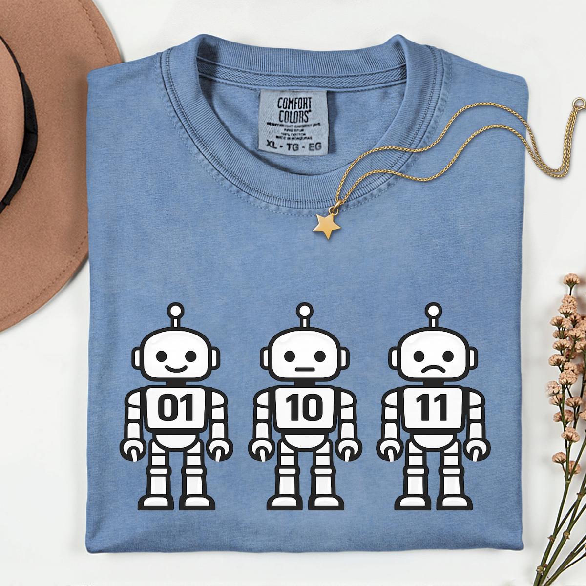 Funny 01 10 11 Robot T-Shirt, Binary Code Programmer Gift Graphic Tee