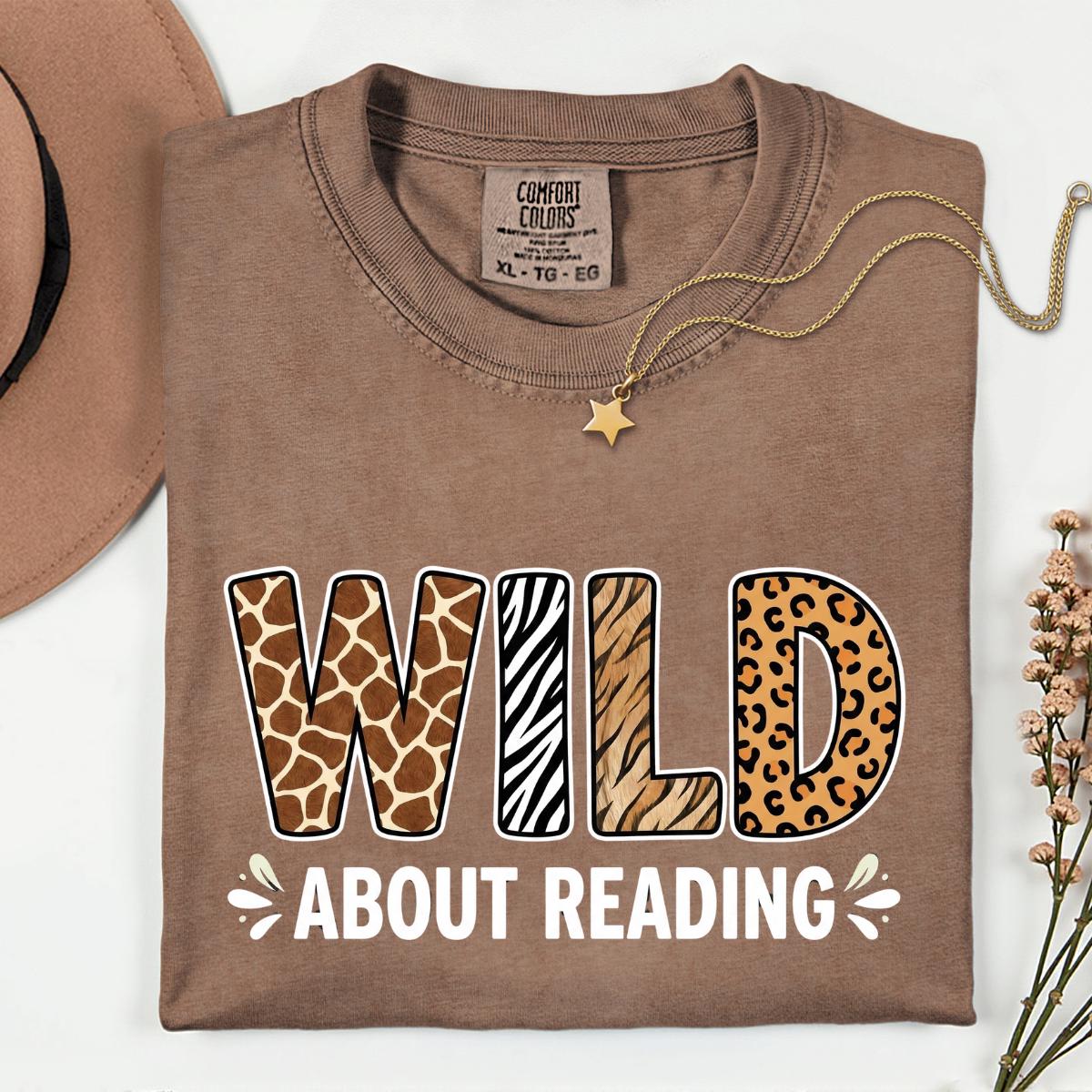 Wild About Reading Book Animal T-Shirt, Children's Book Teacher Gift, Cute Reading Graphic Tee