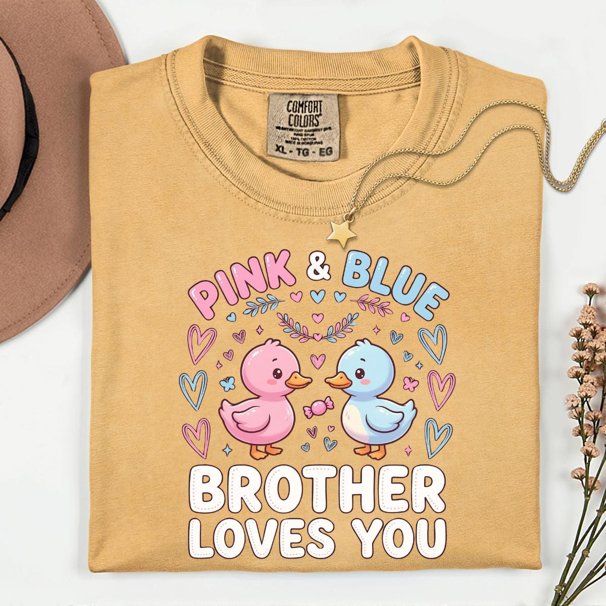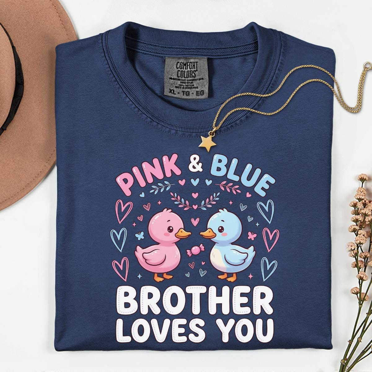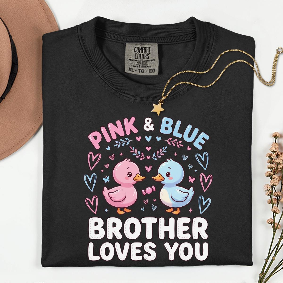 Pink or Blue Brother Loves You Duck T-Shirt, Baby Gender Reveal Party Gift, Cute Duck Graphic Tee