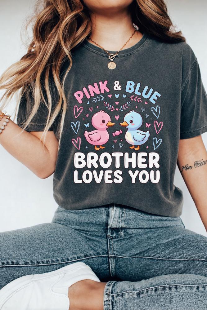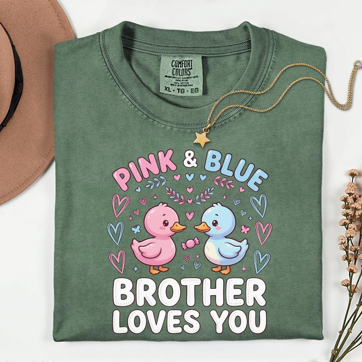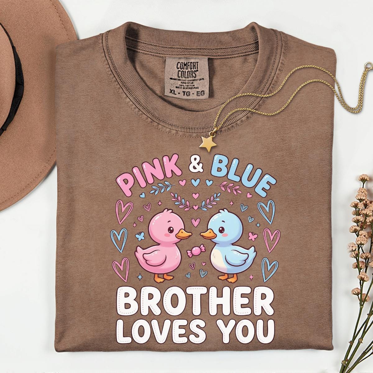 Pink or Blue Brother Loves You Duck T-Shirt, Baby Gender Reveal Party Gift, Cute Duck Graphic Tee