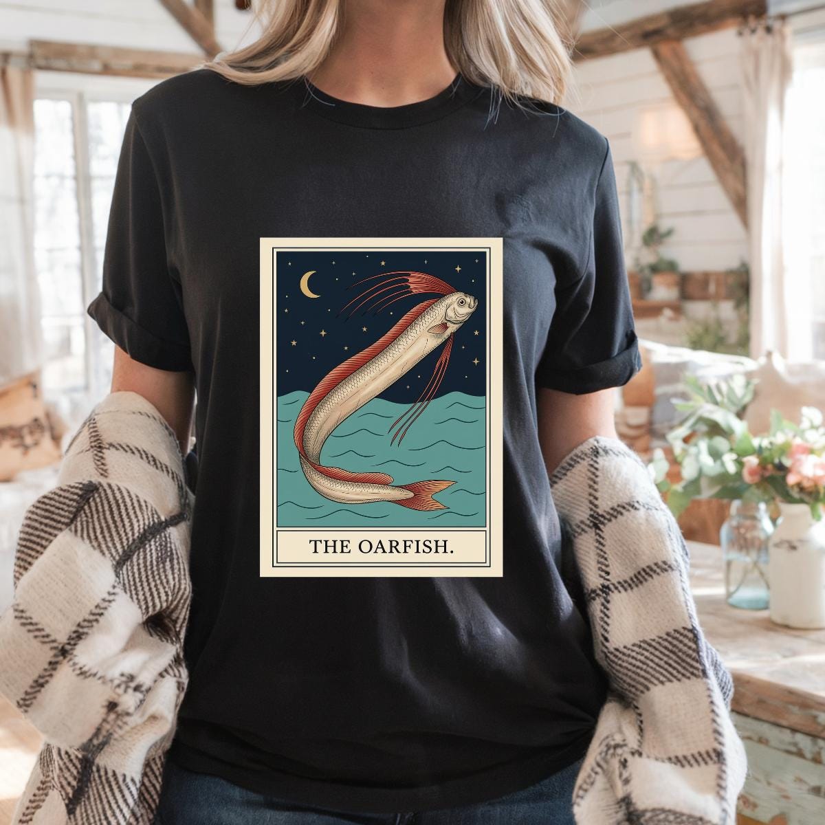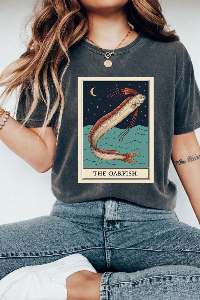The Oarfish Tarot Card Crescent Moon T-Shirt, Celestial Ocean Mystic Gift, Tarot Fish Graphic Tee