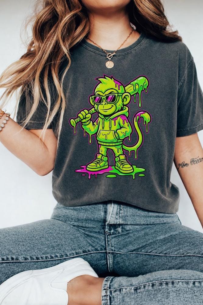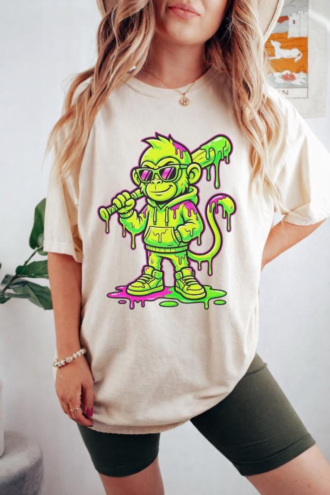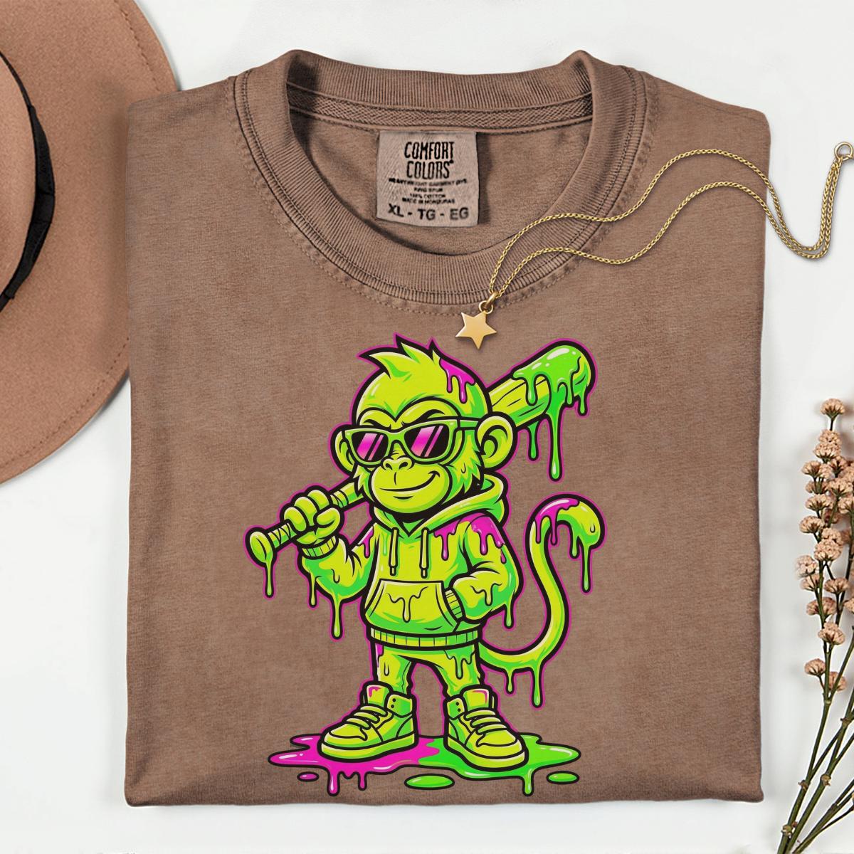 Monkey Baseball Ice Cream Drip T-Shirt, Funny Animal Baseball Lover Gift, Kids Baseball Graphic Tee